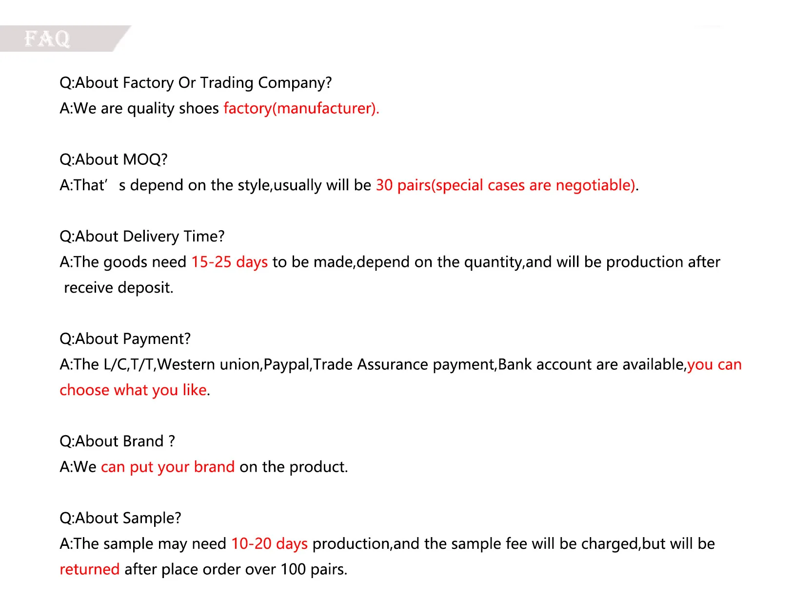 Chengdu Janet Shoes Co.. Ltd. is a professional woman shoes manufacturer which was established in 2009. We are professional for designing. developing and manufacturing high quality ladies fashion shoes. It's a professional footwear manufacturer with its own design team. And it's engaged in all kinds of women shoes. including fashion shoes. sandals leather shoes.high heels.casual shoes.customized and boots. We have several hundreds of styles can be chosen.